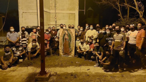 Se trata de hombres de la comunidad El Señor de la Misericordia, ubicada en Colinas del Aeropuerto, de la cual partieron hasta llegar a la capilla de Nuestra Señora de Guadalupe ubicada en el mismo municipio.